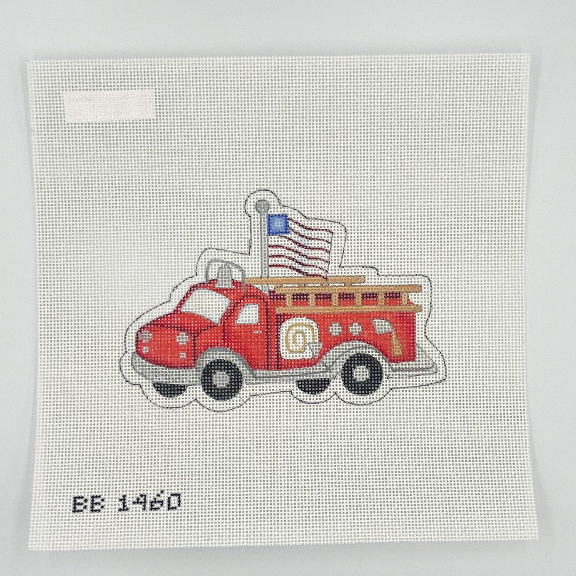 Red Fire Engine with Flag Ornament Canvas